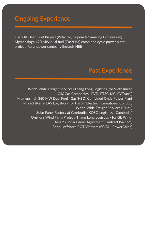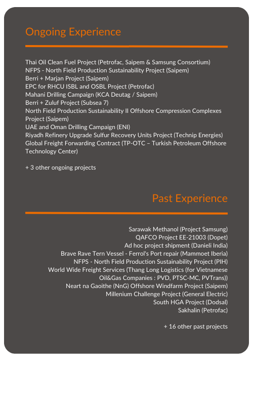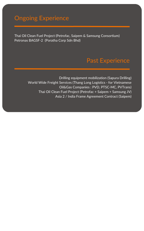 - Rental of Kerry Siam Port for module transhipment operations from HL vessel to barge
